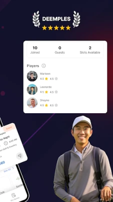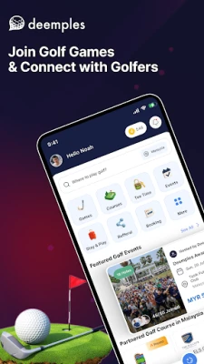 Deemples - Find Golf Buddies je komplexní golfová aplikace. Snadno si najděte golfové parťáky, rezervujte hry a rozšiřte svou golfovou síť. Objevte nové turnaje, lekce nebo si vytvořte vlastní hru. Platba předem a výhodné sazby pro všechny golfisty.