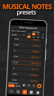 Ovládejte zvuk s neuvěřitelnou přesností díky podpoře desetinných hodnot frekvencí a výběru ze čtyř základních křivek: sinusové, čtvercové, trojúhelníkové a pilové. Vizuální animace zvukových vln vám navíc pomůže pochopit aktuální frekvenci v reálném čase. Čisté uživatelské rozhraní Frekvenčního zvukového generátoru zajišťuje snadnou navigaci a přístup ke všem nástrojům. Přizpůsobte si zážitek v nastavení, kde můžete měnit motivy, aktivovat tlačítka oktáv a upravovat další parametry pro maximální pohodlí.