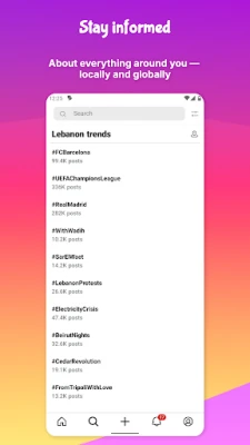 Okamžitě se spojte s ostatními prostřednictvím rychlého chatu v reálném čase. Objevujte populární témata a obsah, který rezonuje s vaším regionem, a rozšiřte své obzory. Přizpůsobte si svůj profil, aby dokonale odrážel vaši jedinečnou identitu a zájmy. Sledujte lidi, kteří vás inspirují nebo jsou pro vás důležití, a mějte přehled o tom, co se děje ve vašem okolí, abyste nikdy nezmeškali nic podstatného.