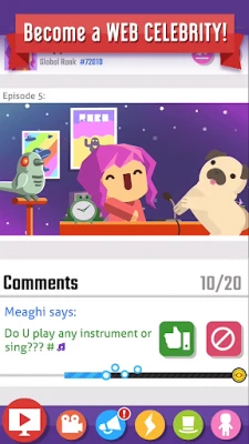 Ve Vlogger Go Viral není cesta ke slávě nikdy nudná. Založte svůj vlastní kanál a začněte tvořit videa z nejrůznějších kategorií – od epických herních sérií a hudebních klipů, přes komediální skeče, až po roztomilá zvířata. Každý úspěšně nahraný klip vás posune blíž k vysněným Play Buttonům za miliony odběratelů. Plňte denní výzvy, sbírejte cenné odměny a sledujte, jak vaše publikum neustále roste. Ideální pro chvíle, kdy hledáte zábavu bez nutnosti připojení k internetu, Vlogger Go Viral nabízí nekonečné hodiny hraní i offline, takže se můžete stát fenoménem, ať už jste kdekoli.